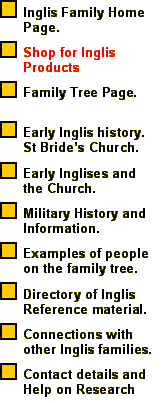Inglis Family Home Page. | Shop for Inglis Products | Family Tree Page. | Early Inglis history. St Bride's Church.  | Early Inglises and the Church. | Military History and Information. | Examples of people on the family tree. | Directory of Inglis Reference material. | Connections with other Inglis families. | Contact details and