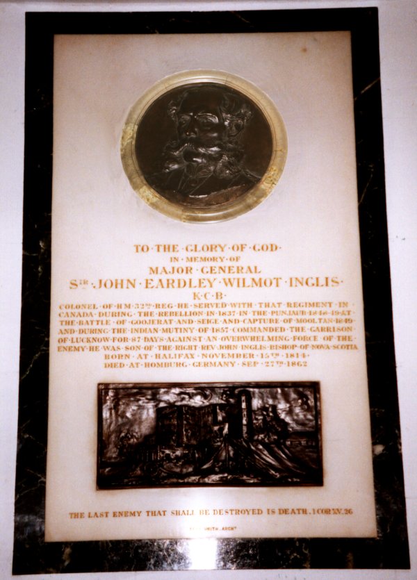 Throughout the gruelling hot season and the torrential monsoon rains of 1857, the British in India fought to put down a rebellion spearheaded by the Indian Soldiers of the army. In Lucknow, the capital of the recently annexed state of Oudh, a small garrison of 1,800 British men, women and children--supported by 1,200 loyal Indians--withstood a siege of almost three months against rebels numbering between 20,000 and 50,000. On July 2, Sir Henry Lawrence mortally wounded 3 days into the Siege, handed over command to Brig John Inglis. 87 days later on the 26th September, led by Major General Outram and General Havelock, a relieving force fought its way to Lucknow but was too depleted in strength to break out of the siege. With the constant strain of attack, mine and counter-mine under the walls, the defenders held out until the middle of November when Lord Clyde's forces were sufficient to relief the garrison. By then half of the 3000 original occupants were dead.
