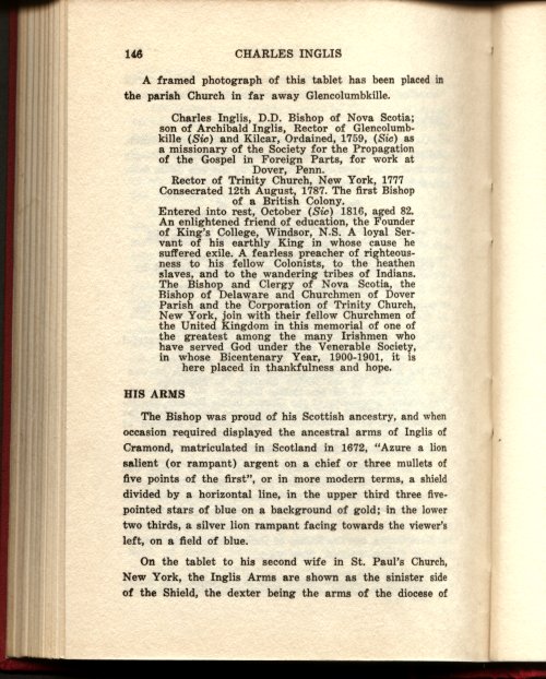 These Inglisess claim descent from the Inglises of Murdouston and hence Mannor. (see Early Inglis History by John Alexander Inglis). Several books on Bishop Charles Inglis (Harris and Cuthbertson) claim that John Inglis of Philadelphia,U.S.A, (1708-1775) a descendant of the Langbyres Inglises (see Llangbyres family tree) paid the cost of passage for Charles to reach America in order that he teach his sons Samuel and John. It is certainly true that a John and Samuel Inglis were pupils in the 'Free School', Lancaster, Pennsylvania where Charles taught on arriving in America. (Harris)